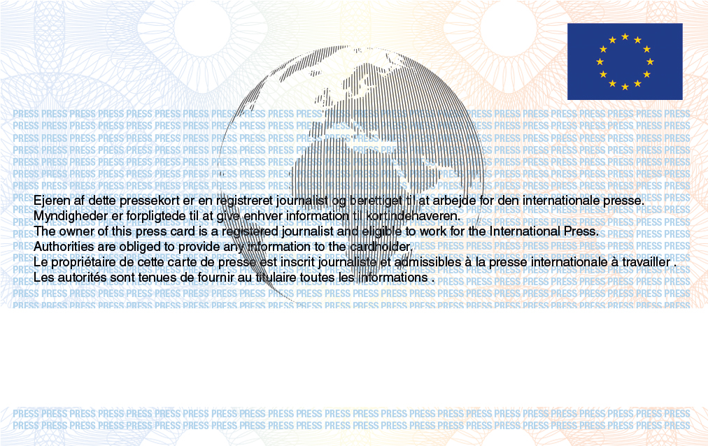 Det internationale pressekort må kun anvendes i forbindelse med journalistisk arbejde. Privat brug og/eller fremvisning er ikke tilladt.